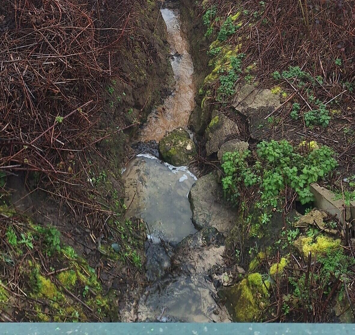 - Le rehaussement du niveau en sortie de buse : Très incisée et profonde, la portion du ru en aval de la route départementale 44 nécessite une intervention pour ralentir l’écoulement de l’eau et limiter les risques d’érosion.